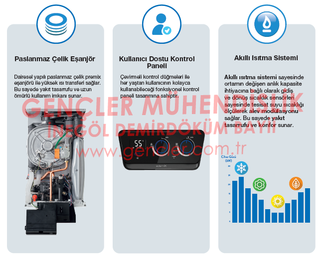 Başlıca en önemli özelliği, çelik eşanjörü, çift işlemcili ana kartı, %25 modülasyon oranı ve dijital şık tasarımıdır. Fiyat/performans açısından bakıldığında müşteri dostu olarak öne çıkmaktadır.