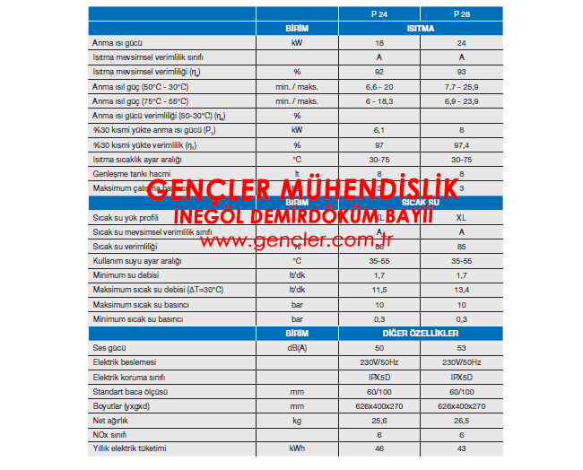 - 24/28 kw : 24kw ısıtma kapasitesi 8metre petek (150metrekare), 28kw sıcak su ısıtma kapasitesi (3farklı yerde sıcak su kullanımı)